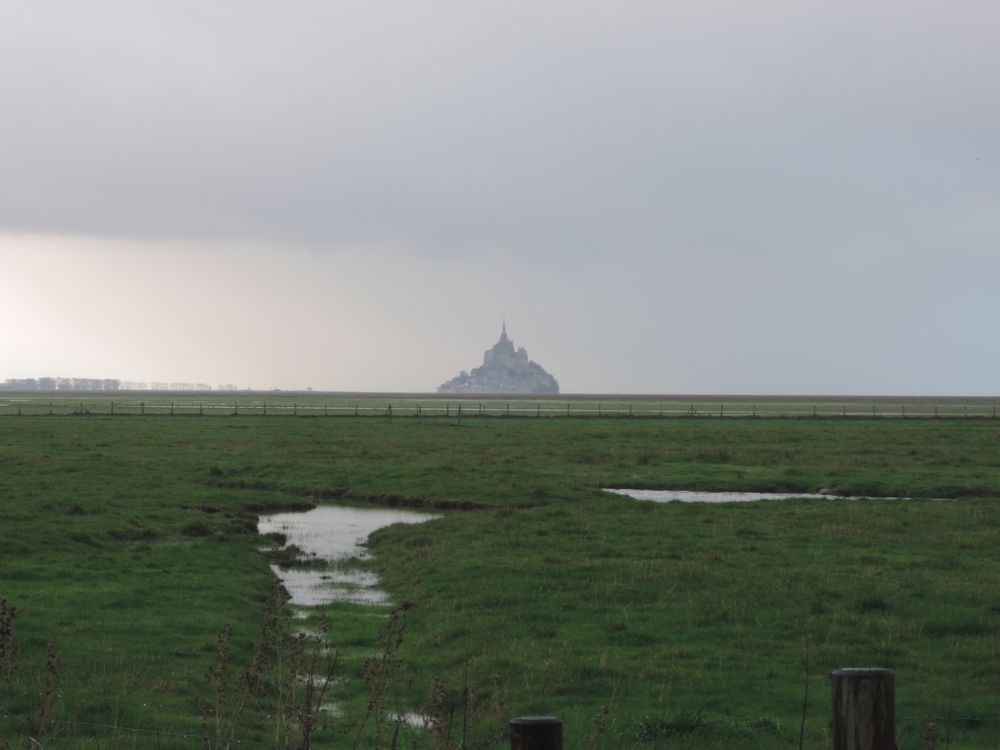 Malgré tout, il faut continuer à rouler et nous quittons Le Havre en direction d'Étretat. Il faut un peu monter pour sortir du Havre mais rien de méchant et il y a beaucoup de pistes cyclables plutôt bien faites dans toute la ville donc c'est cool. Ensuite nous prenons les routes de campagne dans les hauteurs. La pluie est de plus en plus intense et les nuages sont bas. On ne voit rien et on se contente d'avancer pour se rapprocher de la maison. On ne verra rien des falaises, on ne verra jamais la mer même à 100m, pas un paysage. Tout ce qu'on verra ce sont des champs et des routes inondées. La terre est tellement gorgée d'eau qu'elle refoule tout ce qu'elle reçoit, des ruisseaux se créent dans les champs et se déversent sur les routes. Dans les routes qui descendent vers les plages ou qui en remontent, nous roulerons (parfois sur plusieurs kilomètres) dans 10, 20, 30cm de boue! C'est vraiment impressionnant. À tel point que plusieurs voitures s'arrêteront pour nous prévenir que sur tel route un arbre est tombé ou qu'à tel endroit il y a 50cm d'eau sur la route avec du courant, etc... On s'amusera à regarder les voitures passer dans les ruisseaux: certaines arrivant à toute allure, engendrant des trombes d'eau, qui freinent en urgence parce qu'elles viennent de se faire une bonne frayeur; d'autres plus prudents qui décident de faire demi-tour.
