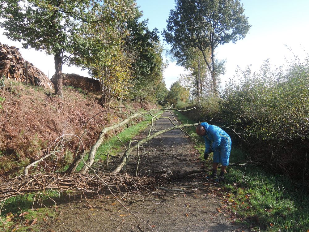 Bref, c'est un des plus beau déluge sous lequel nous ayons roulé. Nous ferons une petite halte dans une brasserie à Étretat pour boire un chocolat chaud et manger une planche de charcuterie (Sandrine a même pris un vin chaud). Et nous déciderons d'écourter la journée, nous devions aller jusque Veulettes-sur-Mer, finalement nous choisirons un petit hôtel à Fécamp. Cette fois-ci, nous avons de l'eau chaude mais pas de chauffage. Malgré l'aide du gérant qui a essayé de bidouiller notre chauffage, rien n'y fait. En plus le gérant est parti et son employée, elle, nous prend pour des jambons. Conclusion, impossible de faire sécher nos affaires mouillées: chaussettes, chaussures, gants, vestes, sacs, sac de couchage du chien, etc... C'est pire qu'au camping. On repartira demain avec des affaires mouillées pour faire 100km de vélo, sympa. Enfin, on a quand même décidé d'étaler le sac du chien et nos chaussures sur le chauffage de l'accueil, chauffages qui eux fonctionnent...