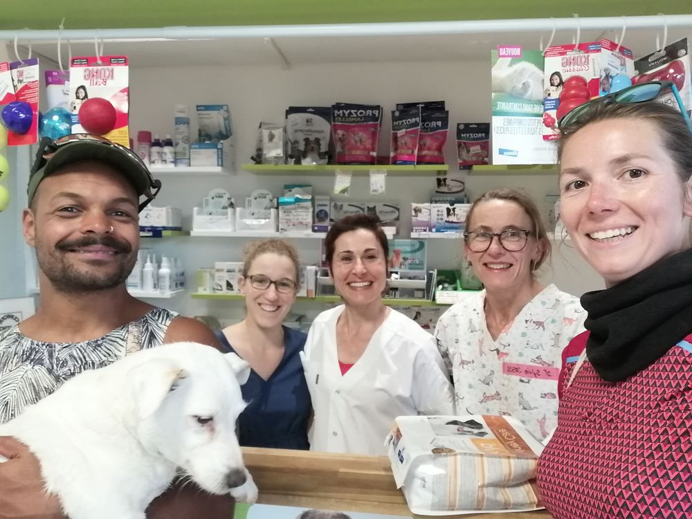 Nos sauveuses du jour: la clinique vétérinaire du centre de La Mure nous a vendu des croquettes pour Carlo!