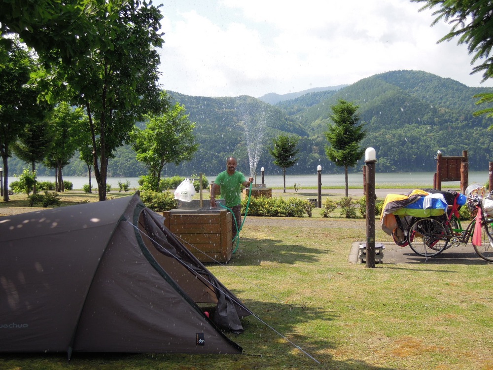 それから6月30日に京都を出まして琵琶湖をもう一度回りまして敦賀まで行きました。フェリーで北海道に行きました。北海道の夏は涼しいはずでしたから(