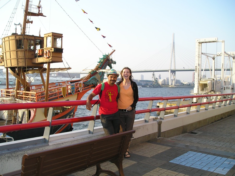 大阪Osaka on February 16, 2011 by ferry (with all our luggage, our 2 bicycles and our dog) and went to