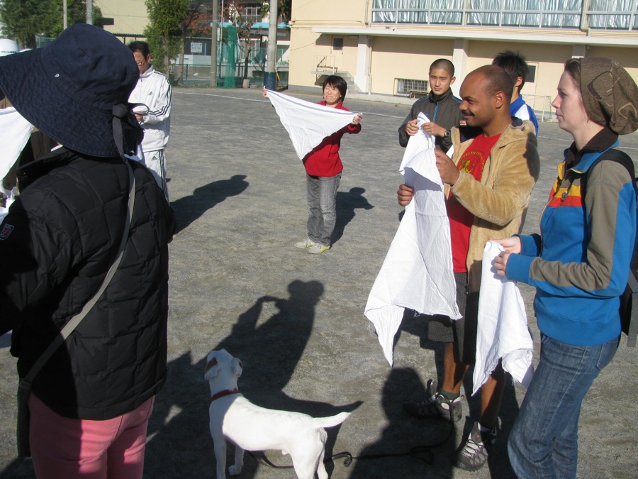 La maman d'ひろHiro nous offre même des bonnets qu'elle a fait. Nous choisissons chacun un joli bonnet en laine très fine. Nous lui donnons une carte postale de Tournai (ville de Belgique proche de la frontière où nous aimons déguster des frites et des glaces!) ainsi qu'un 折紙origami contenant des cure-dents qu'on avait reçu lors d'une visite dans une galerie d'art à 東京Tokyo. ともみTomomi, la femme d'ひろHiro a elle aussi pensé à nous: elle nous a acheté des genouillères! Elle aussi avait eu ce genre de petits soucis lors de ses voyages à vélo avec ひろHiro et elle me les a donc conseillé pour éviter d'avoir à nouveau des douleurs. C'est vraiment adorable!