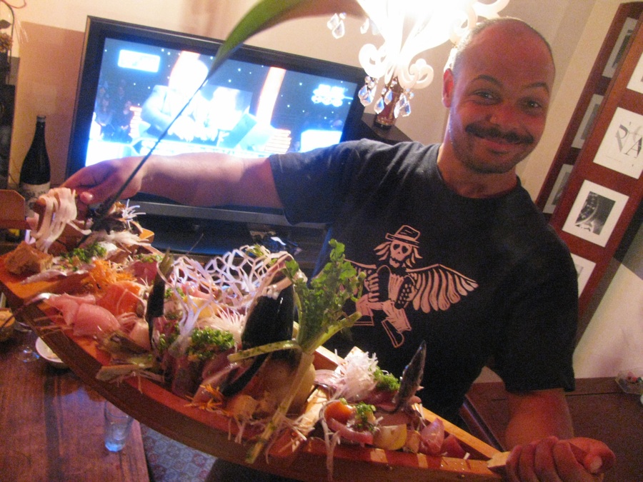 Nous faisons une petite pause (bien méritée après cette journée de dur labeur (héhé) au salon de thé. ともみTomomi et moi prenons un 抹茶matcha (thé utlisé pour la cérémonie du thé au japon) accompagné de petits gâteaux (sorte de meringue). Elle m'explique comment se boit le thé lors de la cérémonie du thé (elle a pris des cours de culture traditionnelle japonaise). Le thé n'est pas très bon mais ça valait le coup!